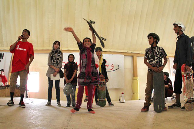 Tamana, 11 wins 1st place in the girl’s skateboarding contest. Photo via Skateistan