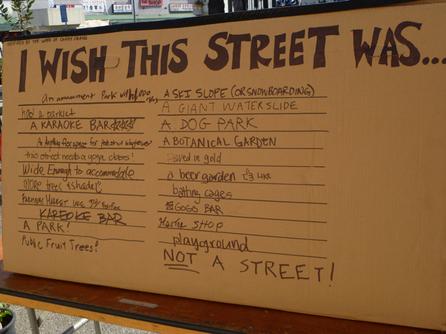 Community members envision a new use for a street in Los Angeles (based on “I Wish This Was…” by Candy Chang). CicLAvia, Los Angeles. Photo by Living Streets Los Angeles