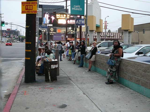 Passengers waiting for the bus in Los Angeles. Photo by David from LA blog.