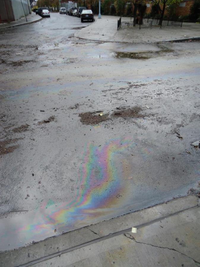Oil sheen in Brooklyn after Hurricane Sandy. Photo by Newtown Creek Alliance.