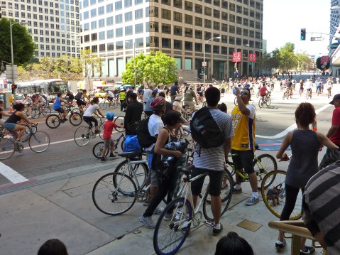 Los Angeles, with it’s warm weather, wide boulevards and high levels of pedestrian activity in certain neighborhoods could be a perfect playground for these types of public spaces. Last year the Los Angeles Department of Public Health received a grant to decrease obesity rates in Los Angeles and together with the Department of City Planning, they decided to put that money towards Los Angeles’ first street-to-plaza conversion project.